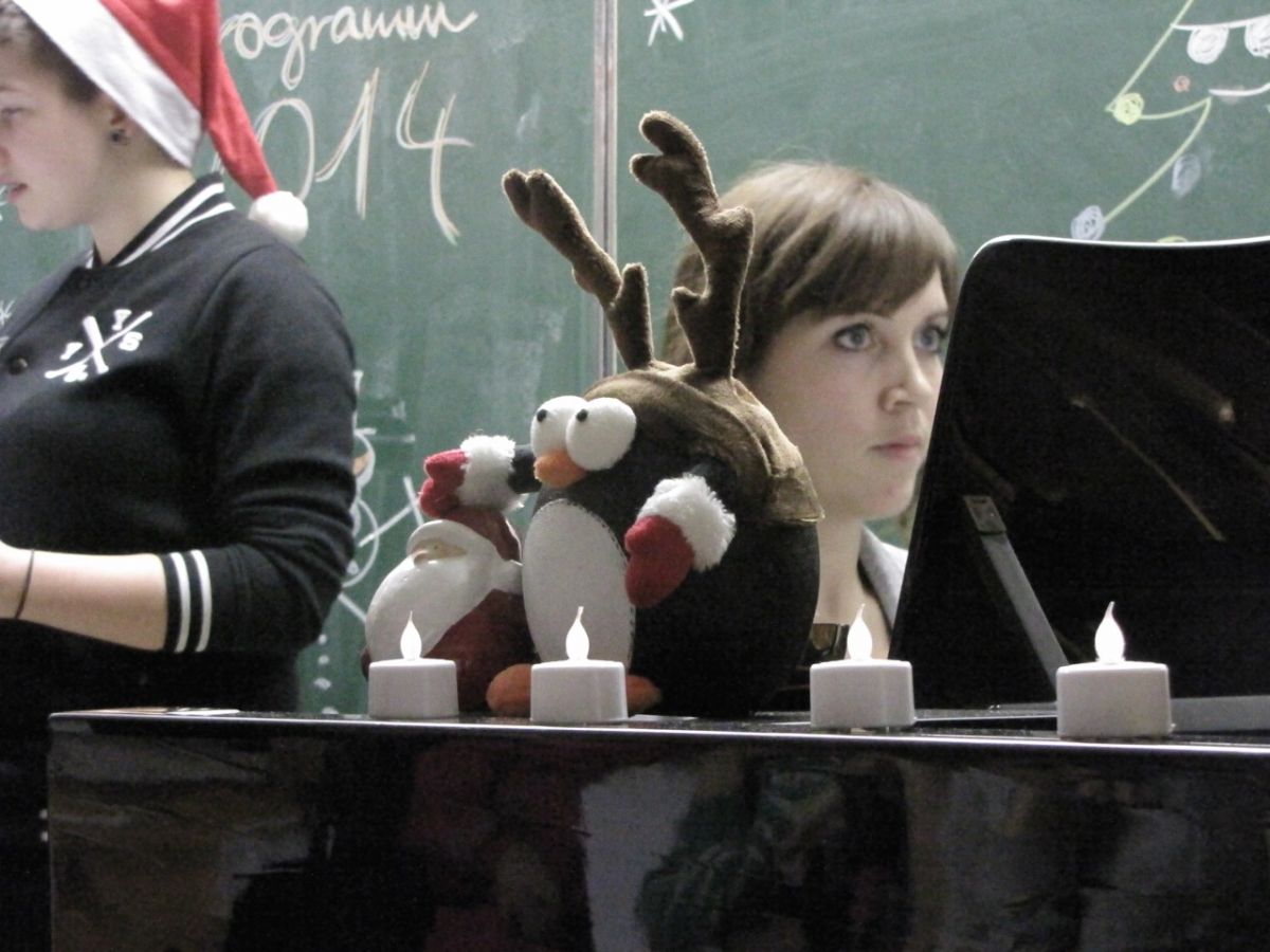 Alle Plätze im Musikraum waren restlos besetzt (eine Aula haben wir zur Zeit ja leider nicht), so dass es im Musikraum etwas beengt zu ging und sehr warm wurde. Trotzdem hat es allen viel Spaß gemacht. Wir sind schon sehr gespannt was uns 2015, dann in der großen neuen Mensa, erwartet.