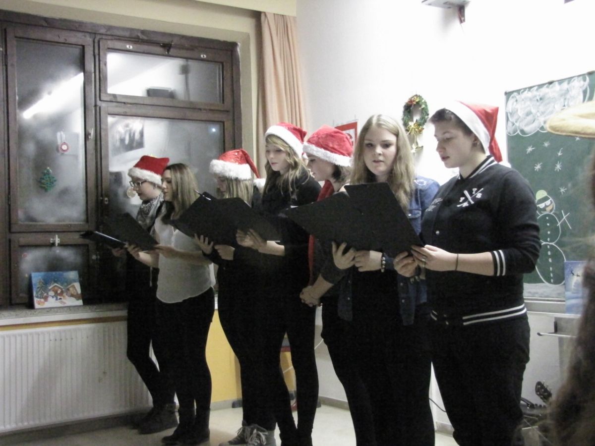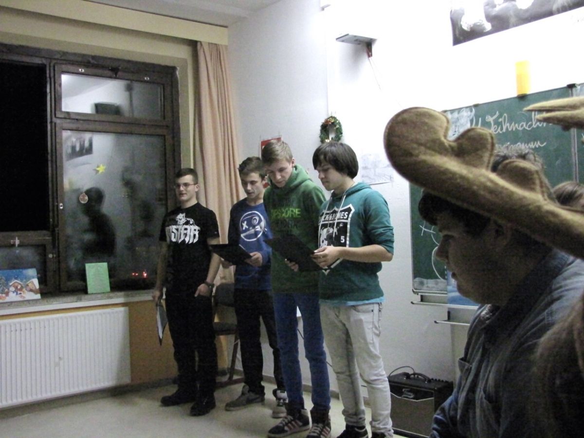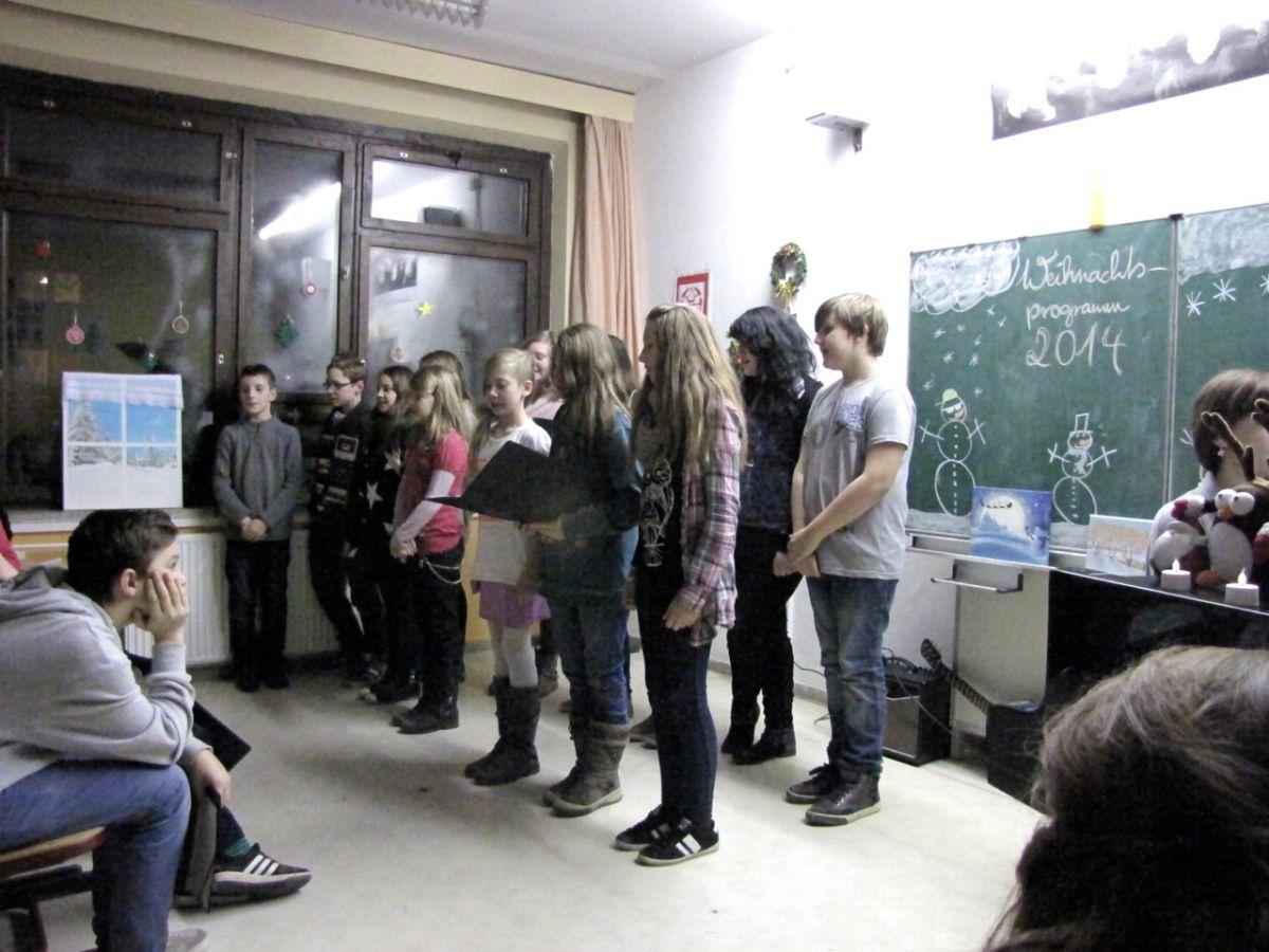 Auch wenn es dieses Mal sehr beengt zu ging, konnte die Tradition fortgeführt werden. Frau Schmidt gelang es mit ihren Schülern aus dem Musik- und DG-Unterricht sowie dem Schulchor erneut ein cirka einstündiges Programm auf die Beine zu stellen, dass alle Zuschauer begeisterte und toll auf die Weihnachtszeit einstimmte. Ein herzliches Dankeschön an alle Mitwirkenden.